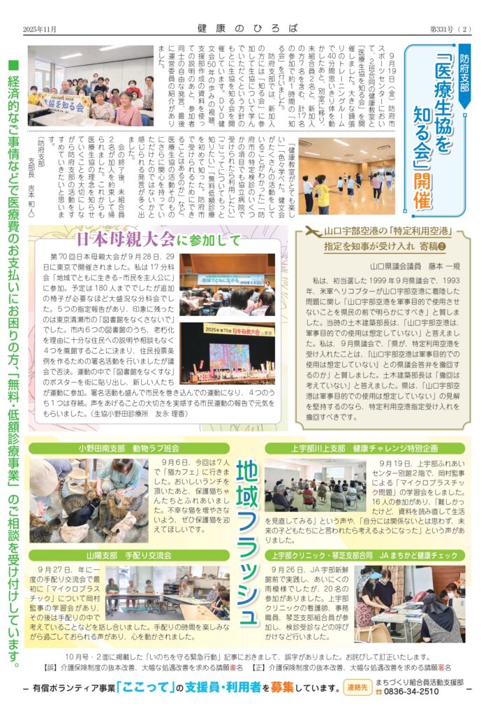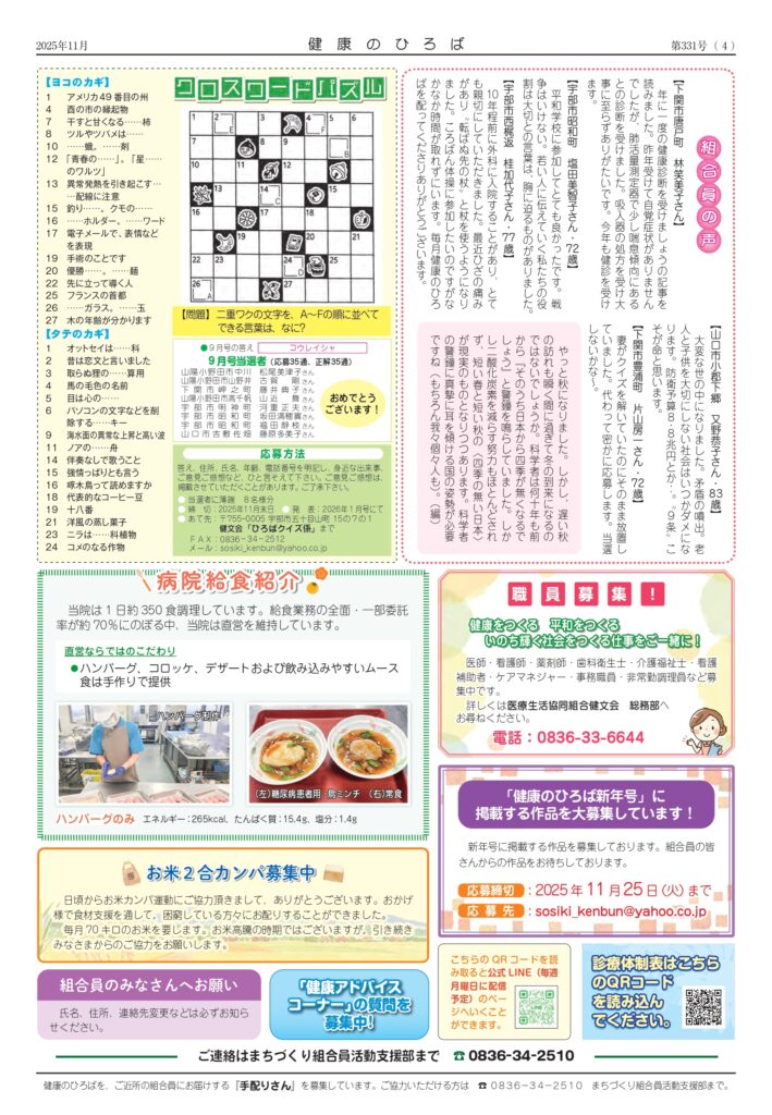 健康のひろば 2025年11月号を発行しました。
