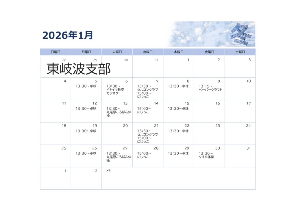 東岐波支部 1月班会の案内