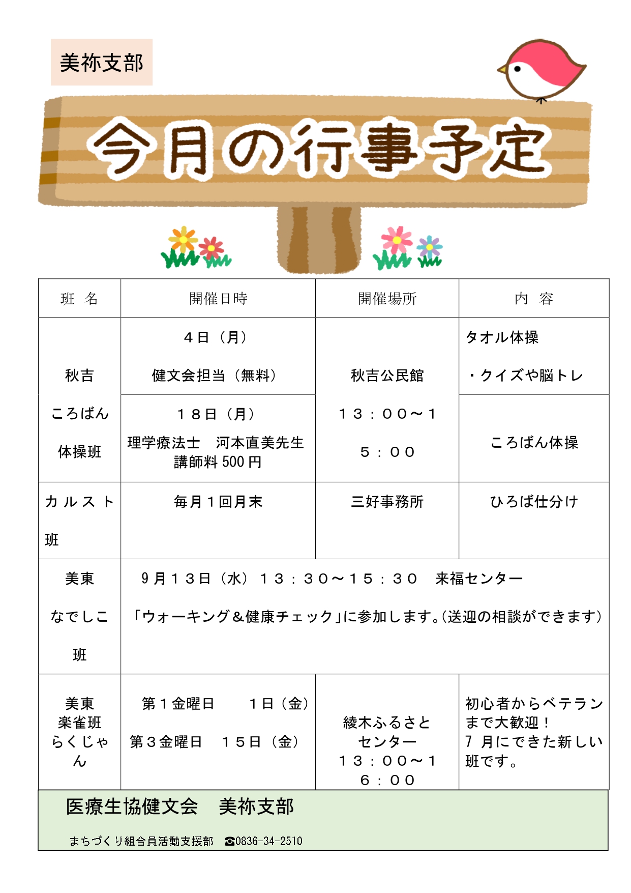 美祢支部9月の班会予定