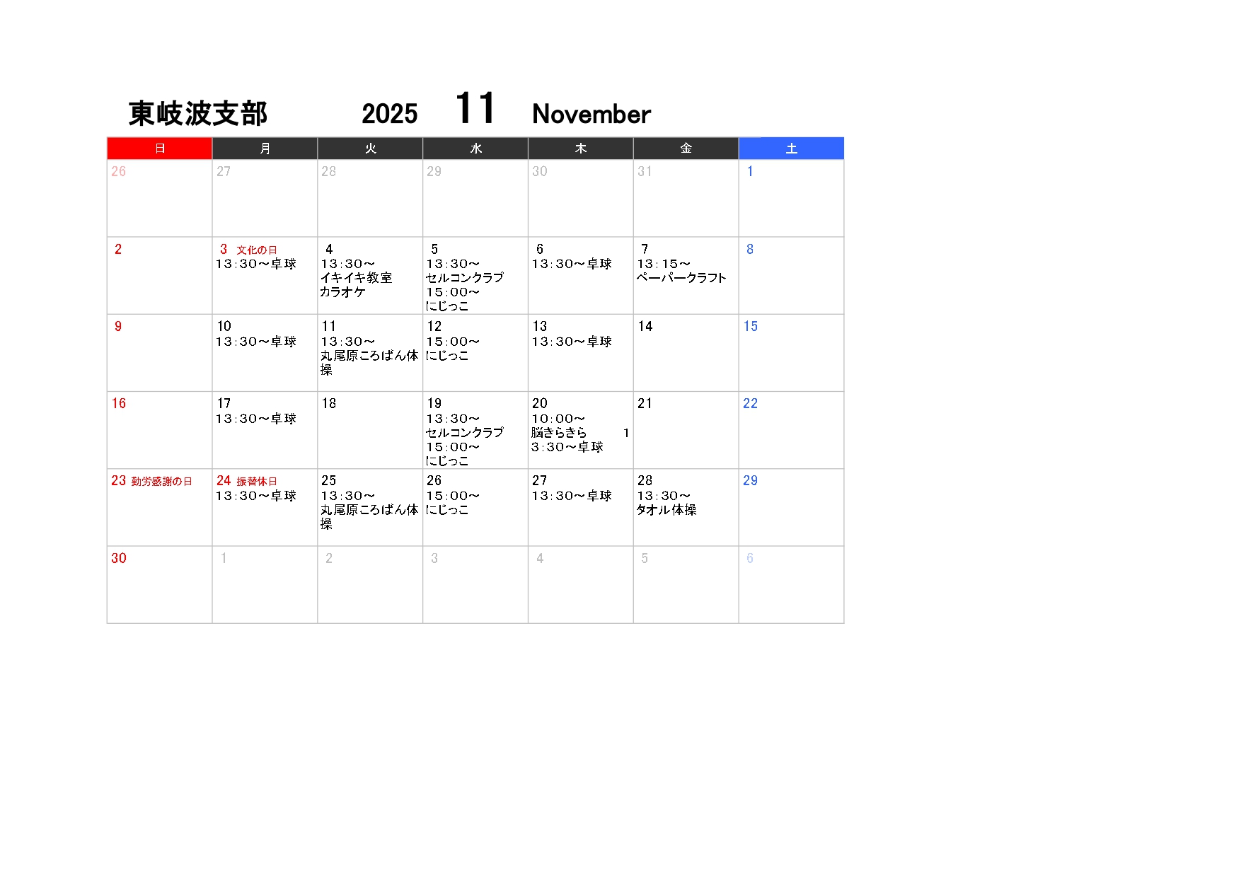 常盤支部 11月ときわ支部ニュース