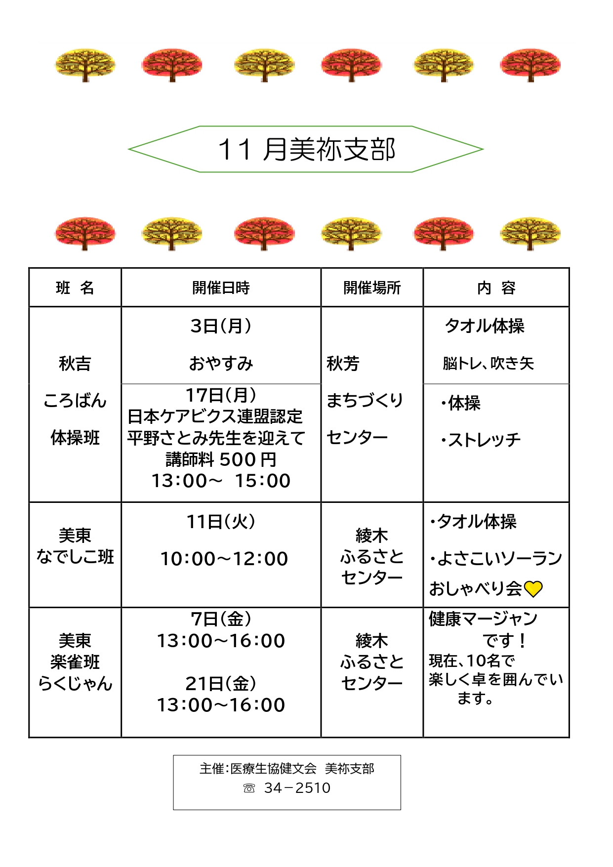 美祢支部 11月の班会予定・お好み焼き会のお知らせ