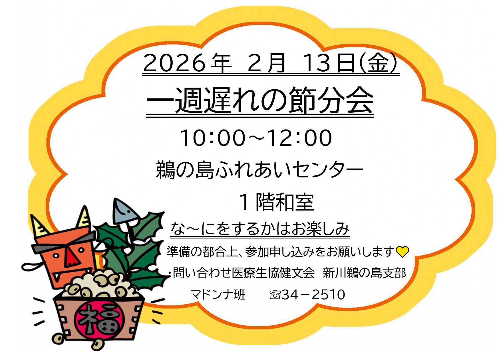 新川鵜の島支部 2月一週遅れの節分会のお知らせ
