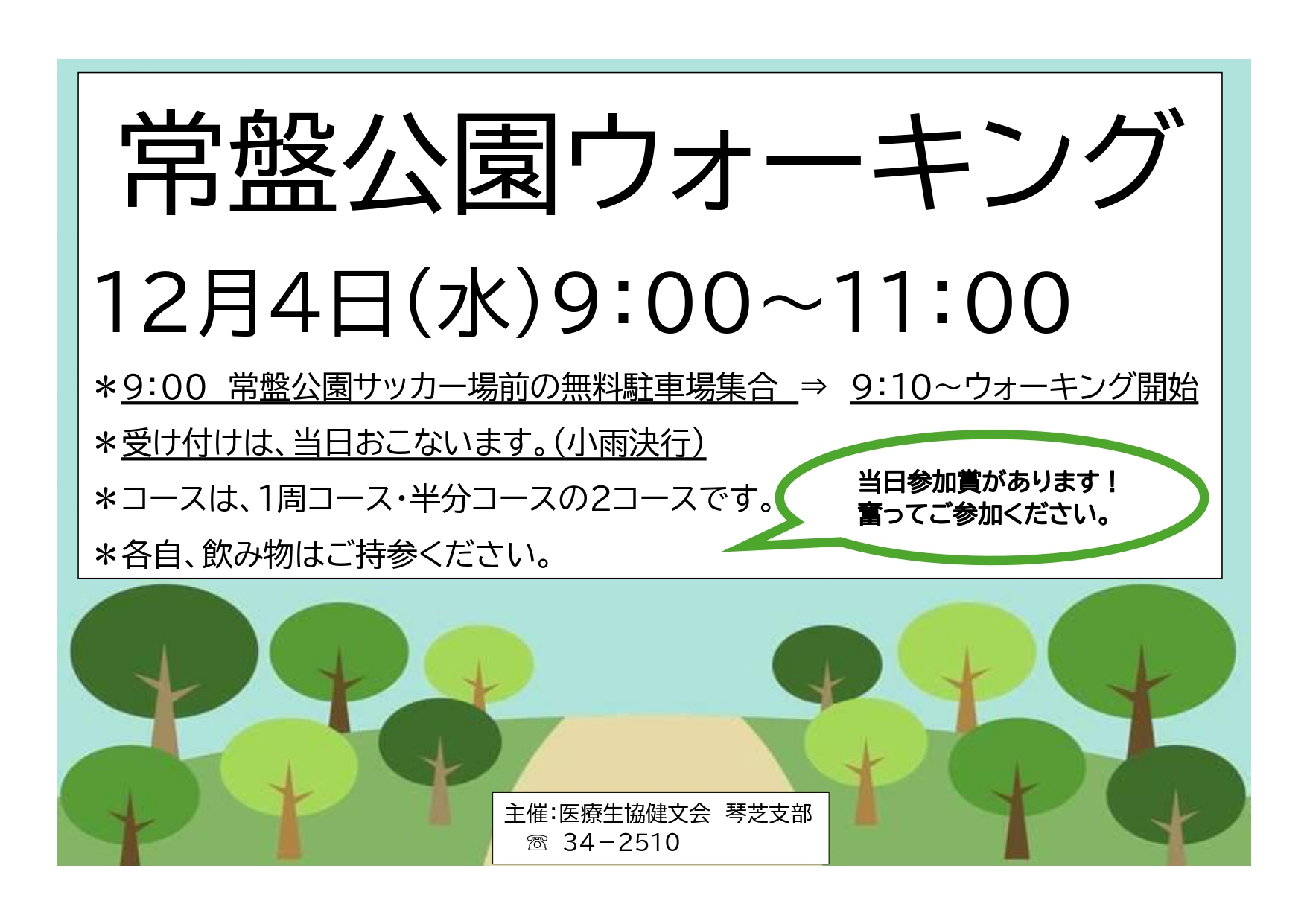 琴芝支部 9月ころばん体操・常盤ウォーキングのご案内